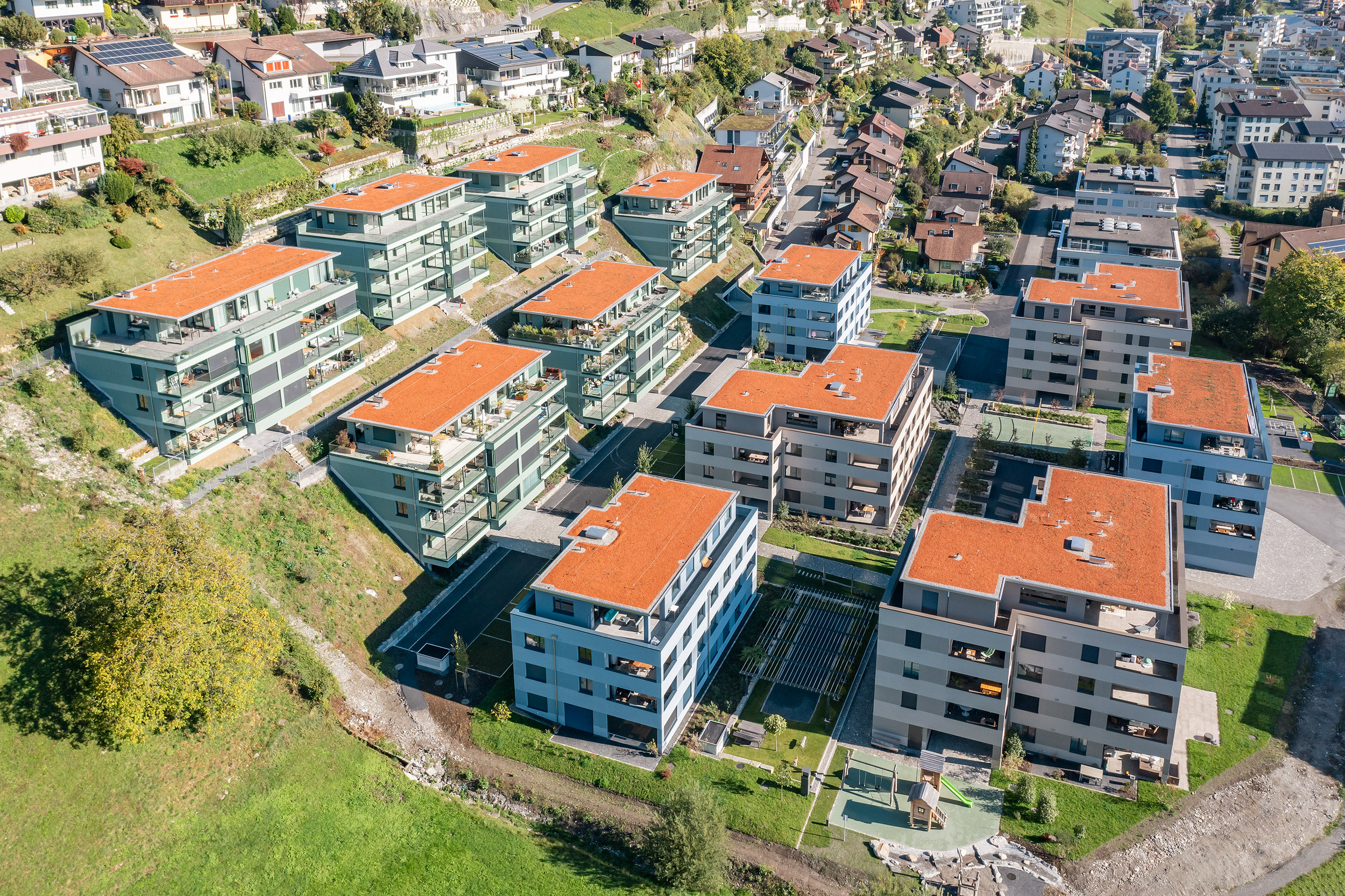 Bei diesen exklusive Eigentums- und Mietwohnungen am Nidwaldner Sonnenhang befinden sich Berge und See direkt vor der Haustür.